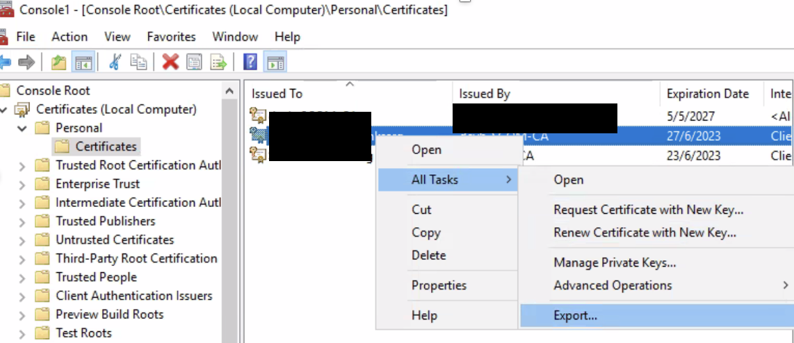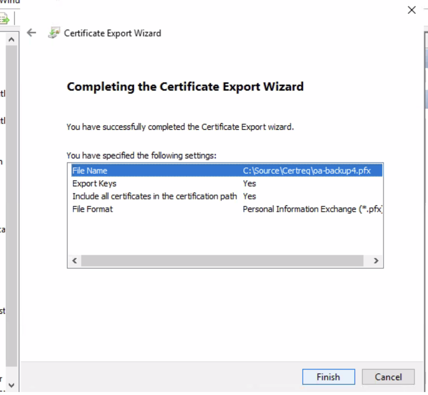 - The certificate would then be saved to local machines' certificate store and ready for export