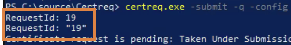 certreq -new -q -config "<CA Name>" .\<file name>.txt <file name>.csr
