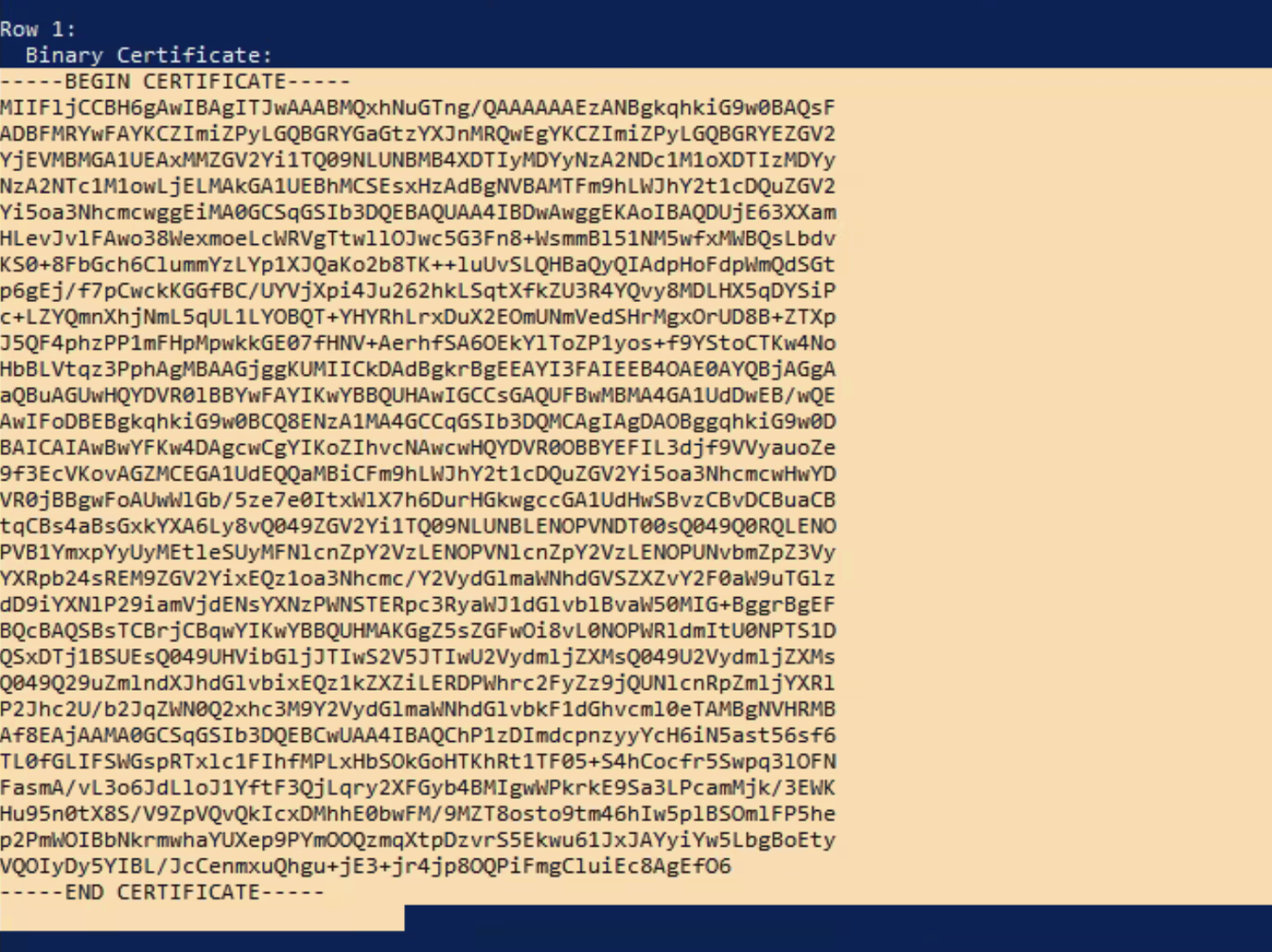 - Copy the text generated (between the --- BEGIN CERTIFICATE--- and --- END CERTIFICATE---) and save to a file with cer extension (like